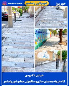 ادامه روند همسان سازی و سنگفرش معابر شهر رامشیر اخبار شهر، عملکرد شهرداری، واحد عمرانی 10 بازدید 16 مهر 1404 07:26 ادامه روند همسان سازی و سنگفرش معابر شهر رامشیر در خیابان ۲۲بهمن در حال اجرا است.