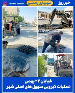 عملیات لایروبی منهول‌های اصلی شهر رامشیربه‌منظور پیشگیری از گرفتگی معابر