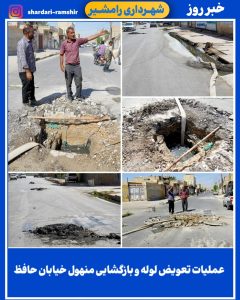 💠 عملیات بازگشای منهول های فاضلاب خیابان حافظ و مستقر شدن اکیپ لایروب خدمات شهری شهرداری رامشیر جهت رفع گرفتگی و تعویض لوله فرسوده.