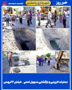 عملیات بازگشایی و لایروبی منهول اصلی خیابان ۲۲بهمن