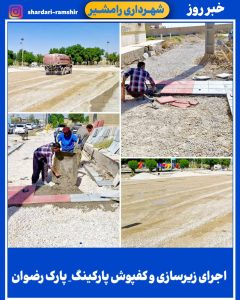 اجرای زیرسازی و کفپوش گذاری پارکینگ پارکرضوان اخبار شهر، عملکرد شهرداری، واحد عمرانی 13 بازدید 22 مهر 1404 11:09 💠 اجرای زیرسازی و کفپوش گذاری پارکینگ پارکرضوان به همت واحد عمرانی شهرداری رامشیر.